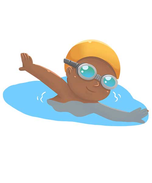 Confidence grows through gentle challenges to be more independent; firstly, with floatation devices and/or the supporting hands of our instructors and ultimately small distances alone.